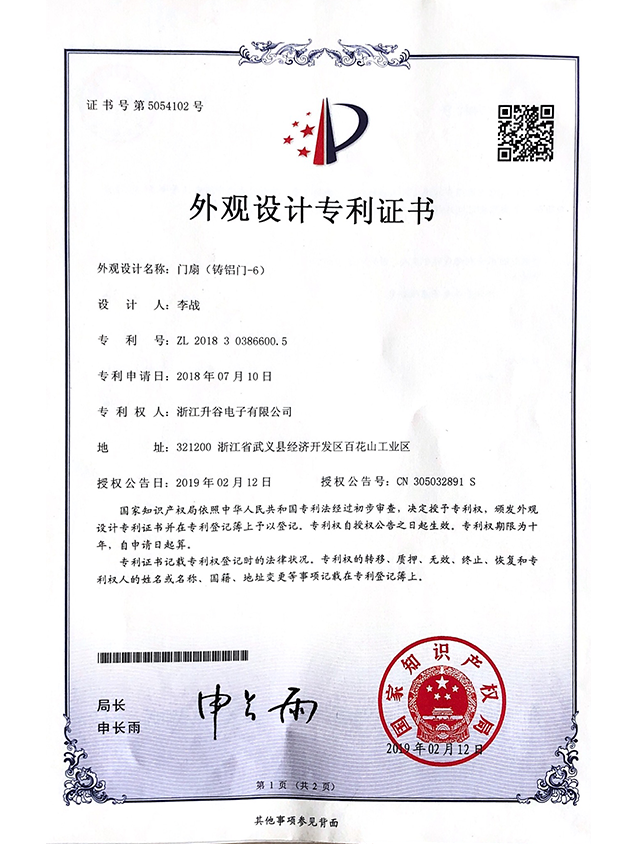 浙江升谷电子有限公司位于素有“温泉之城”美誉的浙江省武义;公司始建于2004年,占地面积30000多平方米;是集设计、生产、研发、销售及运营管理为一体的综合性企业,15年专注中高端装甲门、铸铝防爆门、钢包木双色防盗门和防盗防爆锁的高新技术型企业,具备年生产20万樘的生产能力