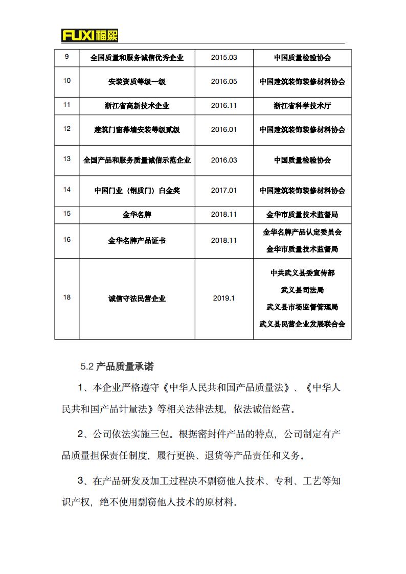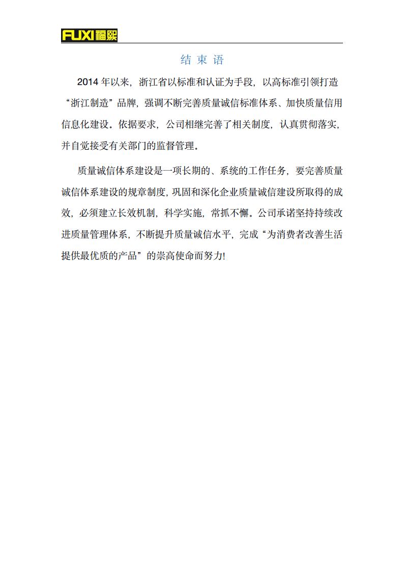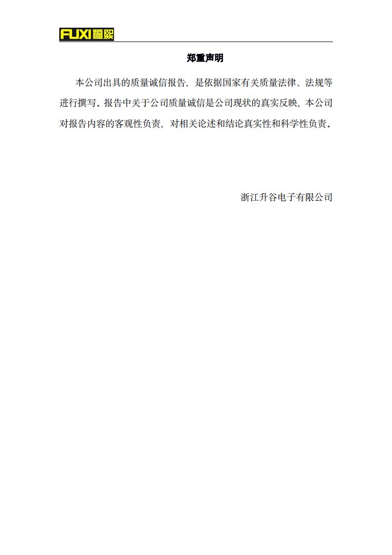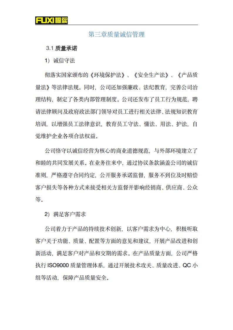 福熙质量诚信报告