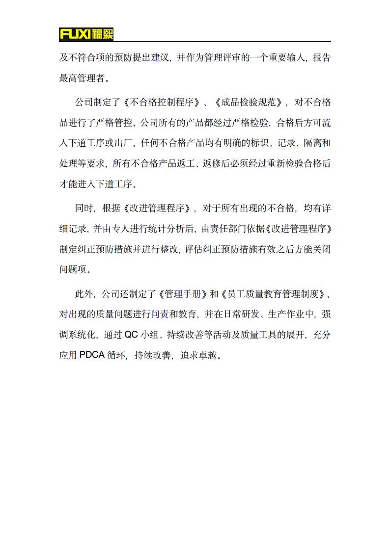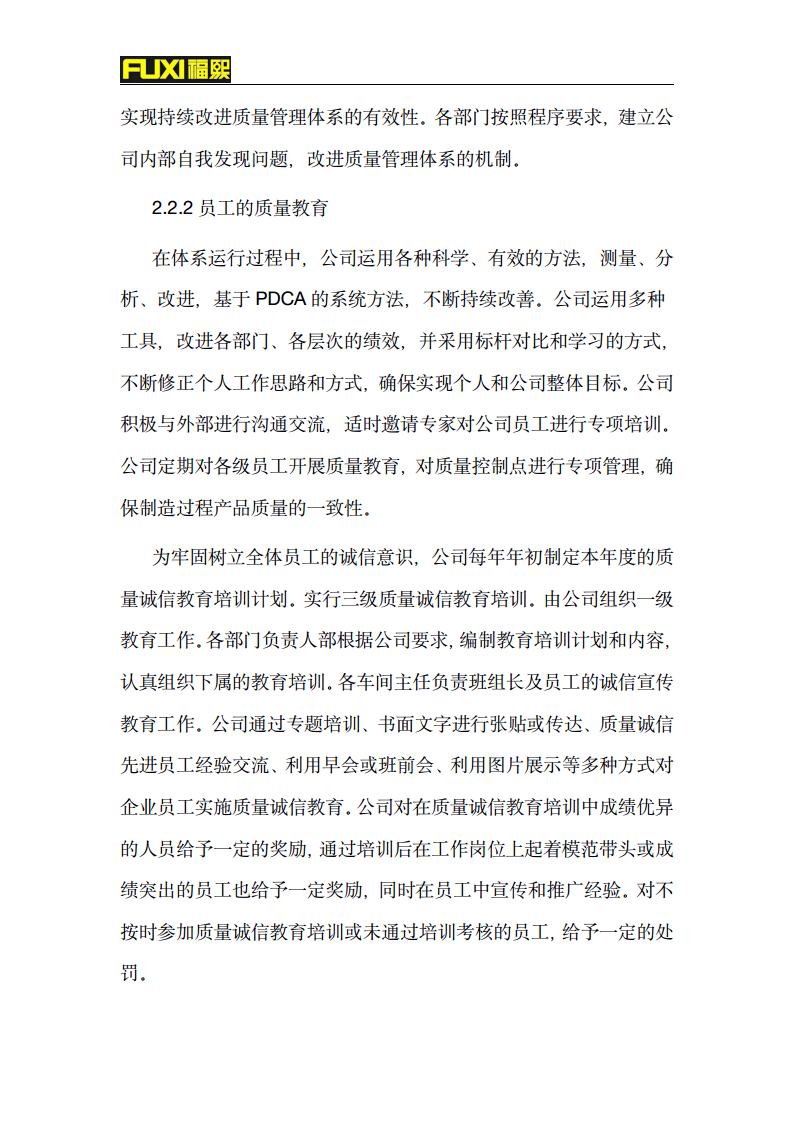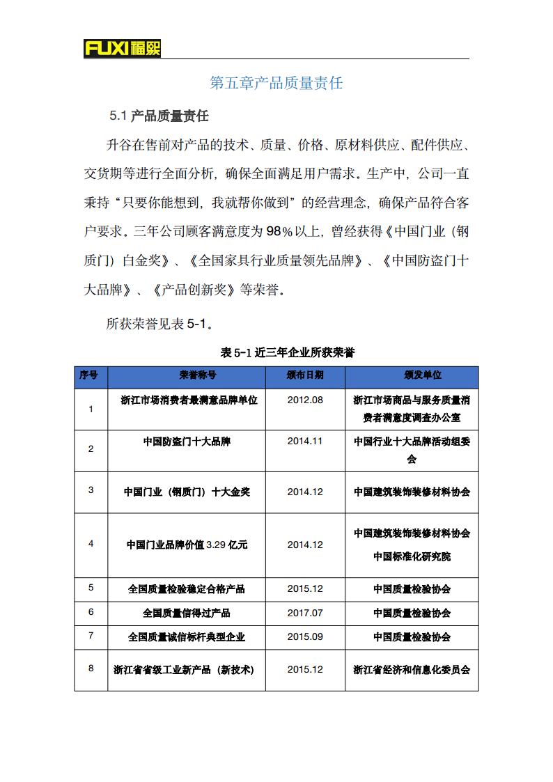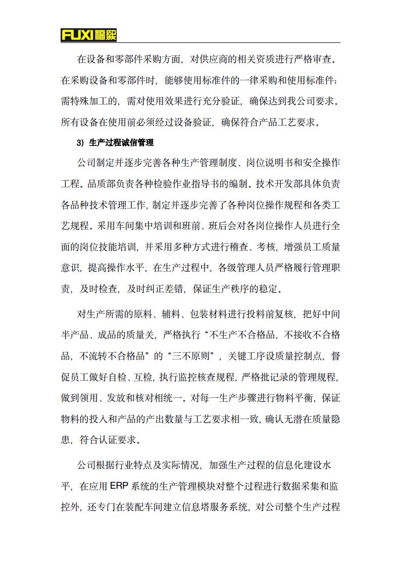 福熙质量诚信报告